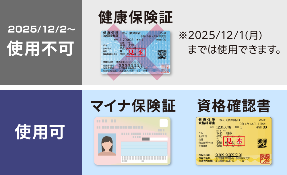 ※2025年12月1日(月)までは従来通りの健康保険証をご使用いただけます。